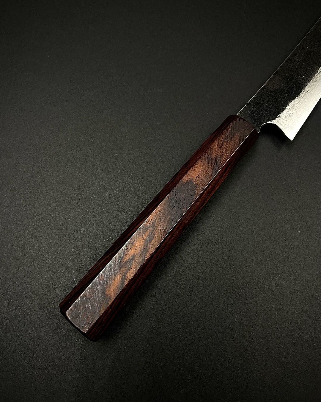 Forged from high-performance HSS (High-Speed Steel), this 210mm sujihiki delivers exceptional edge retention and durability, making it an ideal companion for slicing proteins with clean, effortless strokes. Whether working through delicate fish or perfectly cooked meats, it maintains sharpness through demanding service.