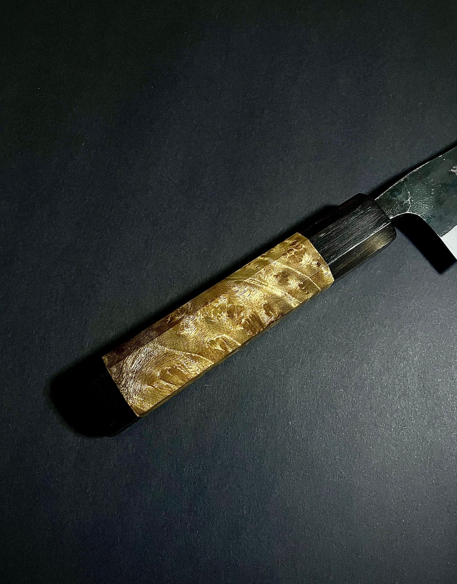 Originally popular in western Japan, this design has a thick blade from the tang to the edge, making it ideal for push-cutting like a Nakiri knife.