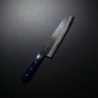 Paired with a blue pakkawood handle, the knife provides a comfortable grip, good balance, and durability for long-term use in busy kitchens.
